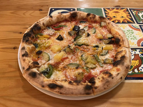 ナポリピッツァ生地に昔ながらのミックスピザの具材を合わせてみました。